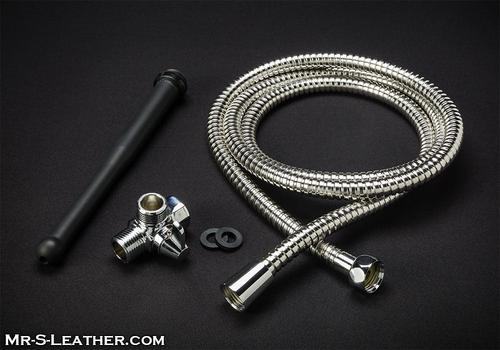 The Mr. S Shower Shot Kit is one of the best and easiest ways to clean out before playing. Installs easily in between the shower arm and shower head for easy control of pressure and temperature - much more convenient than a douche bulb.