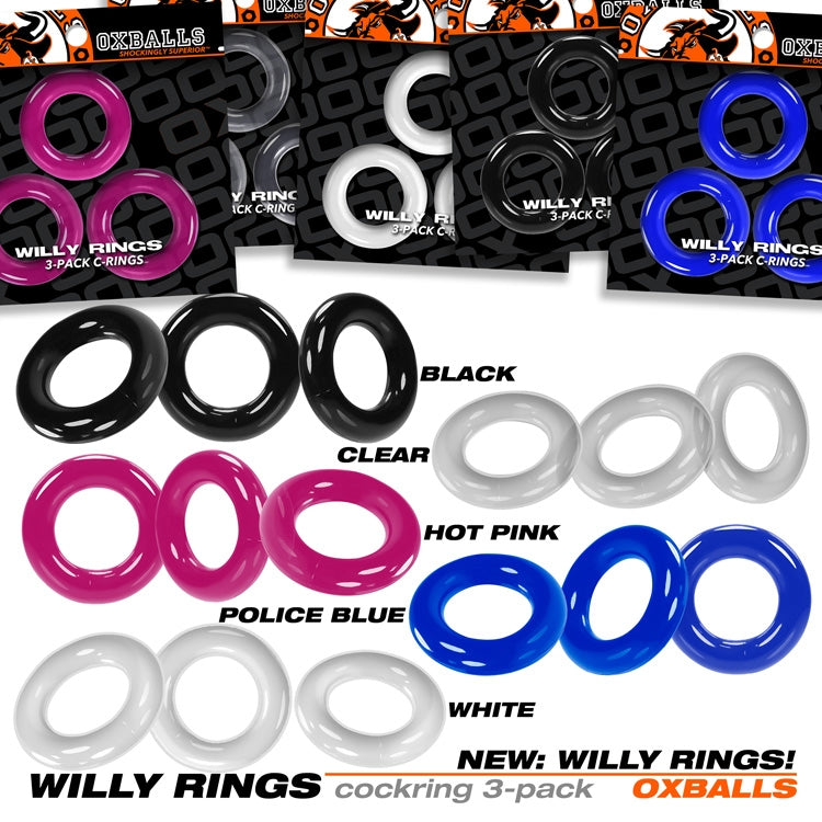 Oxballs new super stretch 3-pack WILLY RINGS cockrings, the perfect ring for guys that want a stretchy tight ring that lasts—this is not a jelly ring, WILLY’s last.